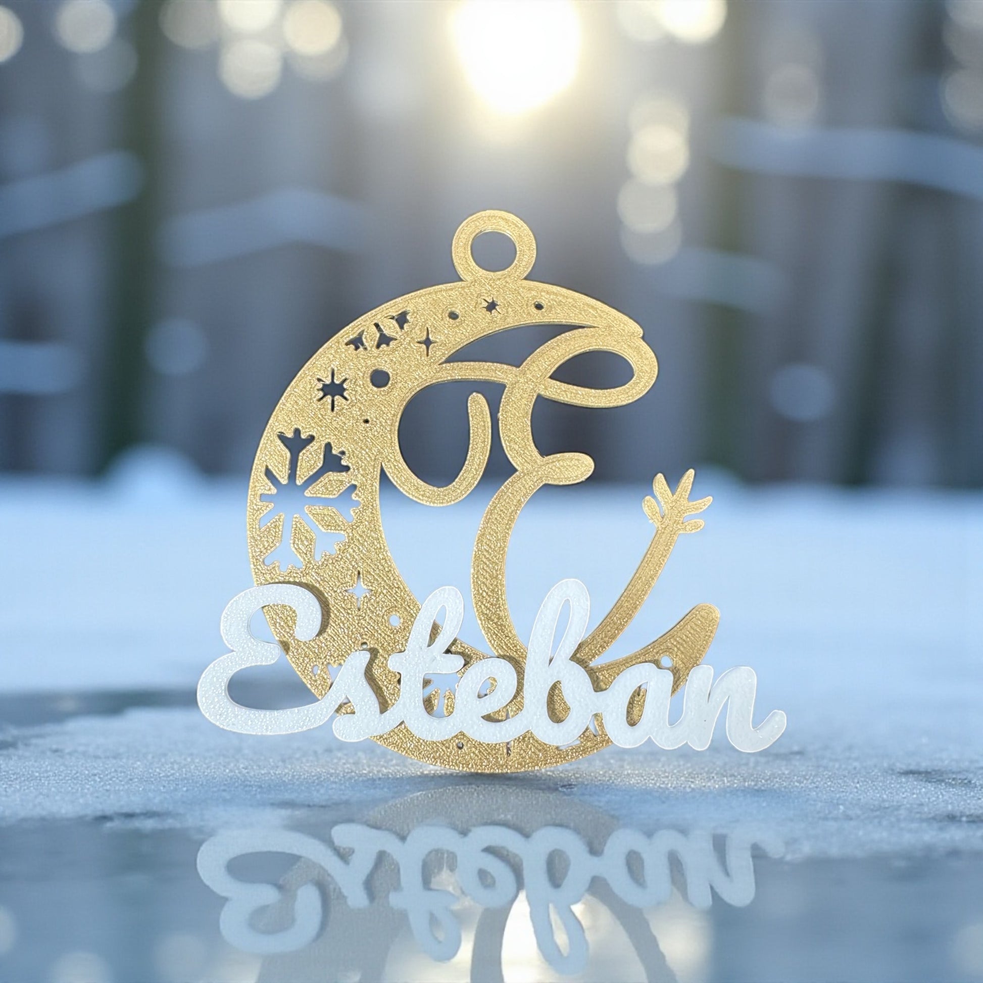 Dale un toque único a tu árbol estas fiestas con nuestras bolas de Navidad personalizadas, creadas con impresión 3D de alta calidad. Cada bola incluye una inicial grande acompañada del nombre en color blanco, creando un contraste elegante y moderno que resalta entre las luces navideñas.